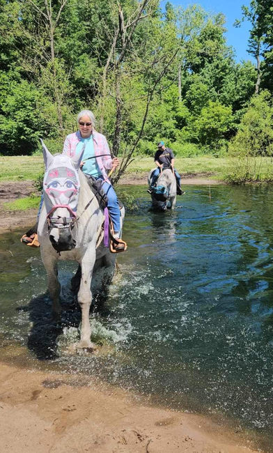 Hello there, sweetheart. I'm Anna. My daughter Elsa and I came here from Starry Skies sanctuary back in early '22. We were a bit skittish at first, bless our hearts. Never had much in the way of gentle hands before. Spent our lives working hard in the fields, and it left its mark – teeth worn from rough bit handling, both of us too thin for comfort.